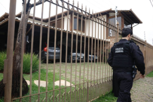 Policial federal deixa a casa do senador Weverton Rocha nesta quinta (18) após cumprimento de mandado de busca e apreensão...