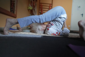 Charlotte Chopin se alonga no tapete de ioga em sua casa em Léré, França. Foto: Antoine Castagné/The New York Times Em uma...