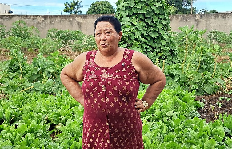 Outro ponto que reflete a mudança em sua vida é o cuidado com a saúde e a adoção de hábitos mais saudáveis. Dona Idalina é responsável por uma horta cultivada aos fundos da Unidade de Saúde do bairro Primavera III, onde produz verduras e hortaliças. Parte dessa produção, inclusive, é doada ao próprio CRAS, e outras repartições, em um gesto de solidariedade e retribuição ao apoio recebido. “Eu atuo com verdura há muito tempo e faço doação para o CRAS, para a cozinha comunitária e para a UPA”, conta.