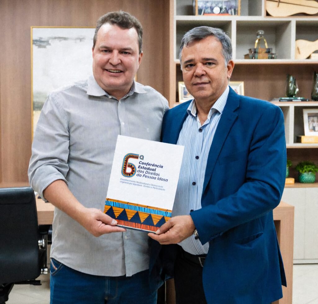 O presidente do Conselho Estadual de Defesa dos Direitos da Pessoa Idosa de Mato Grosso (CEDEDIPI-MT), Isandir Rezende, se reuniu nesta quinta-feira (11) com o presidente da Assembleia Legislativa de Mato Grosso (ALMT), deputado Max Russi, para oficializar a entrega do convite da VI Conferência Estadual de Defesa dos Direitos da Pessoa Idosa, que será realizada nos dias 24, 25 e 26 de setembro, em Cuiabá, na Câmara de Dirigentes Lojistas (CDL).