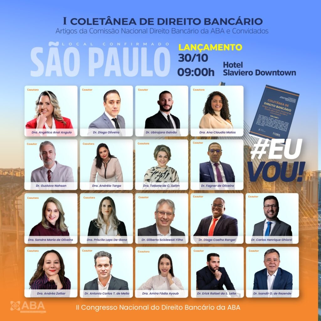 O lançamento contará com a presença de membros da Comissão Nacional de Direito Bancário da ABA e convidados especiais, reforçando o compromisso da instituição com a valorização da advocacia especializada e a difusão do conhecimento jurídico.