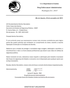 O governo Donald Trump enviou uma carta ao secretário de Segurança do Rio de Janeiro, Victor Santos, nesta terça-feira, 4, uma semana após a megaoperação que deixou 121