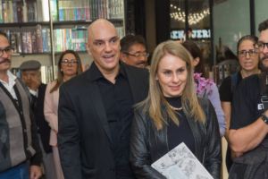 O ministro do STF Alexandre de Moraes e sua mulher, Viviane Barci de Moraes, em lançamento de livro em SP...